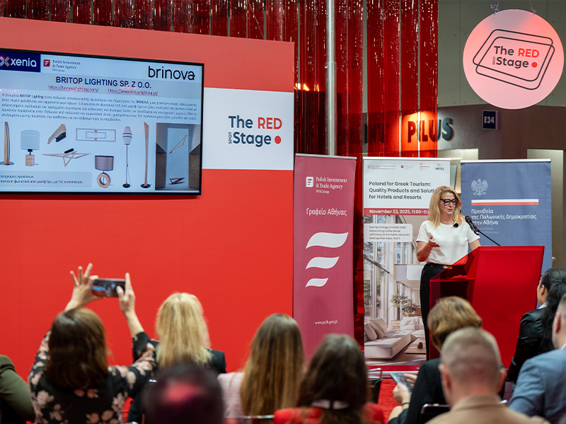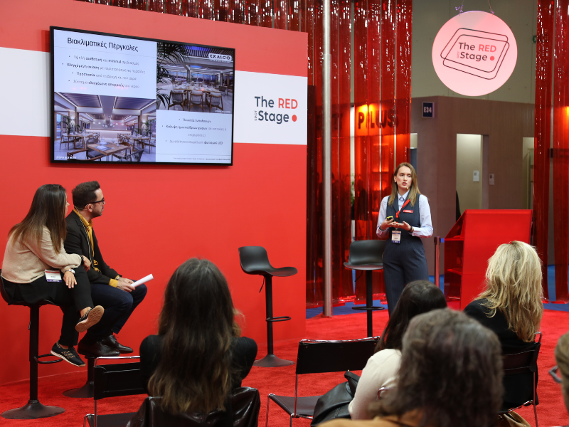 Xenia 2025 opened its doors today at the Metropolitan Expo, with The Red Spot Stage — curated and coordinated by ek magazine — recording impressive attendance and strong participation from professionals in architecture, hospitality, and construction. The space, designed by Rena Sakellaridou and the RS Sparch office, served as a hub for dialogue and the presentation of contemporary approaches to the creation and operation of hotel units.